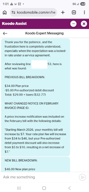 I’m absolutely perplexed. I previously had posted on here about koodo saying they were going to raise my price despite me being on a 2 year contract. I had a staff member reply but now that post has been archived or deleted. I phoned into koodo and had a rep contact me / email me to promise me that that increase would not apply to me, but it ended up applying. So what now?