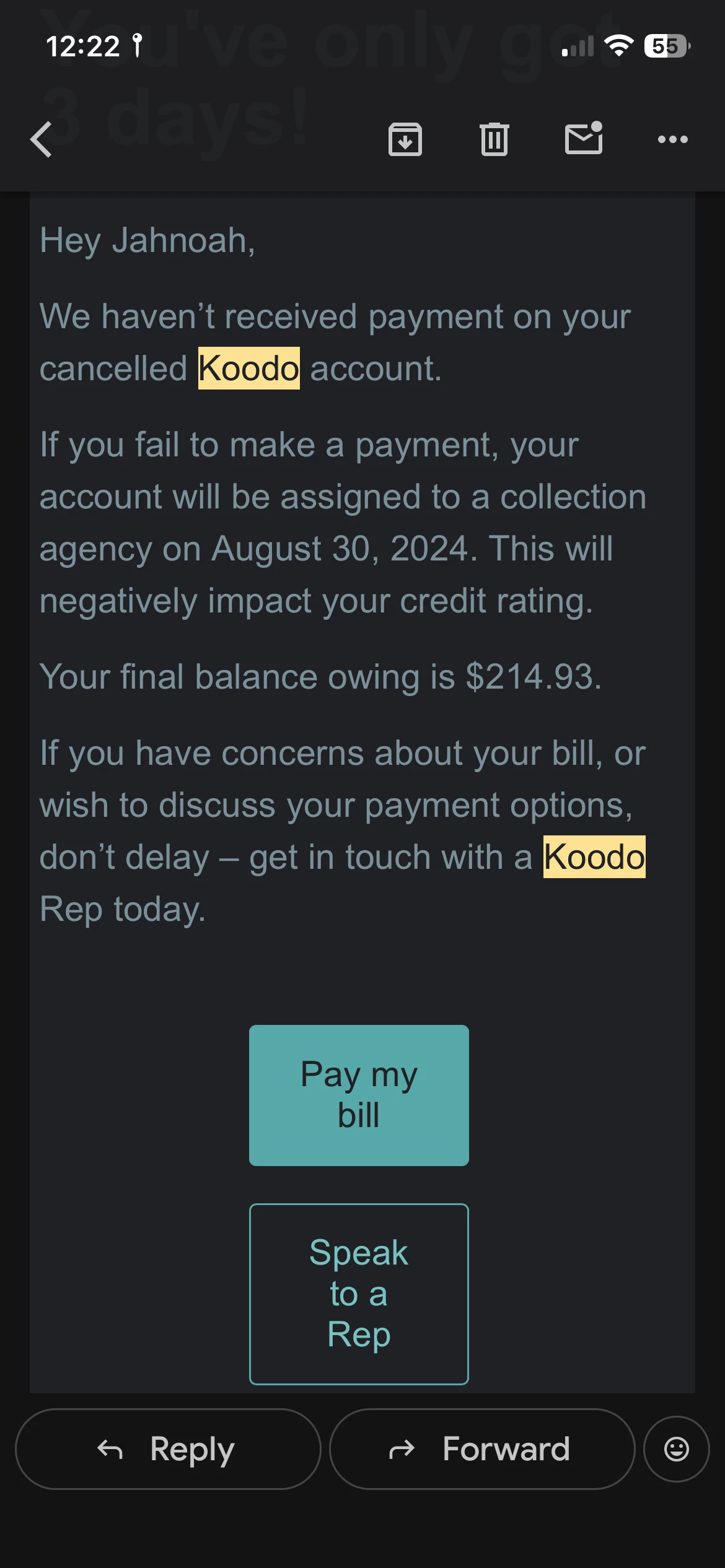 You guys need to drop the outstanding balance due to the fact that one of your salesmen did a horrible job on explain to me how Koodo works.