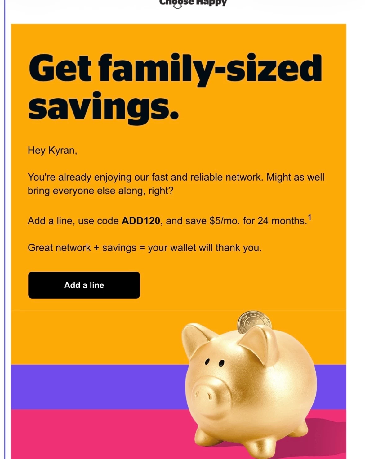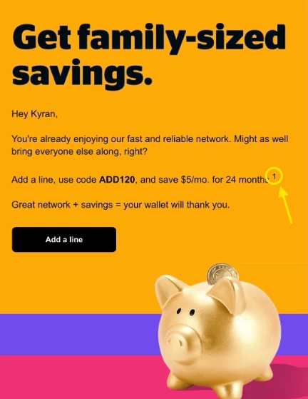 I recently added a new line there was a discount code of. ADD120 And it’s not showing up on my bill
