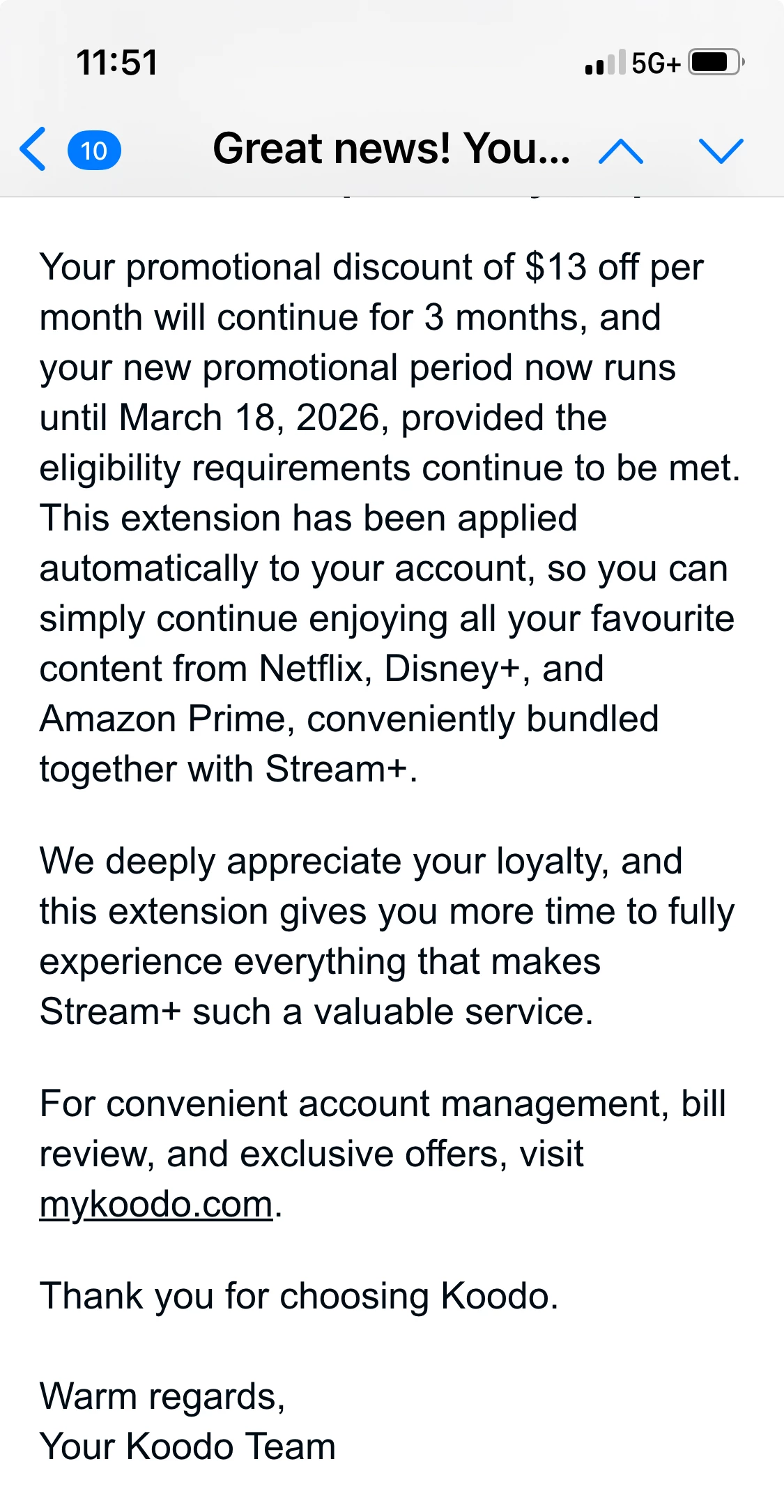 I have received a promotional offer in September to subscribe to Stream+ Basic for a special rate ( valid until Dec). Before my subscription ended I’ve got an email from Kodoo confirming that the promotional offer has been extended to March. My account shows the discounted plan valid but on my last bill I’ve been charged the full regular rate.