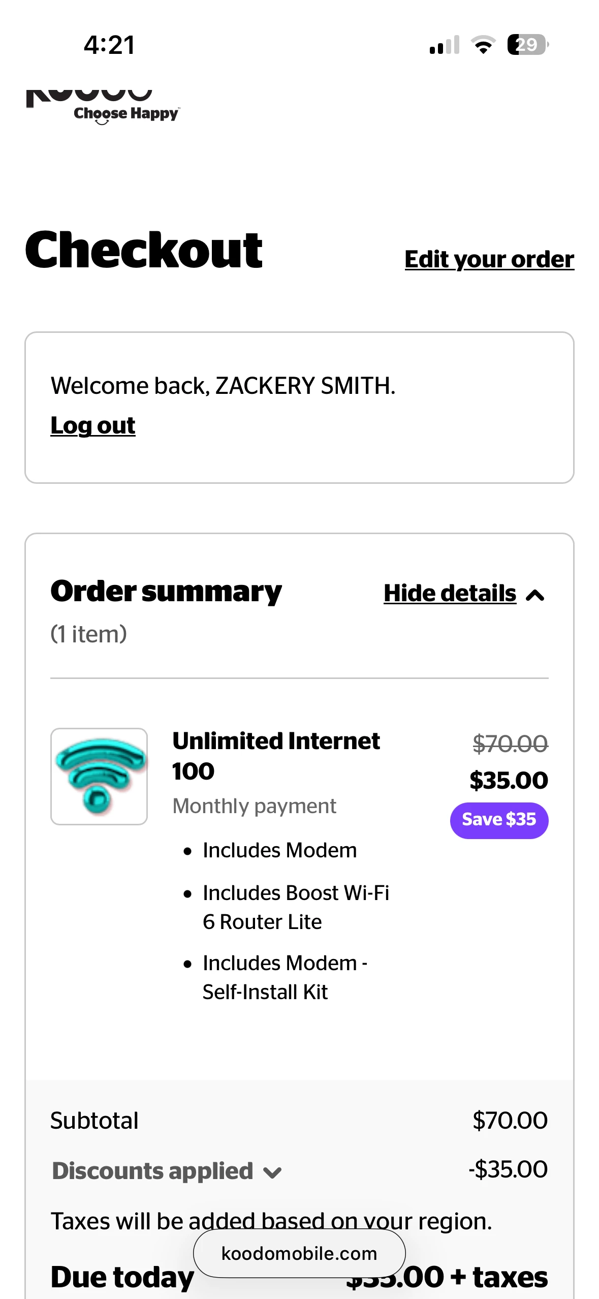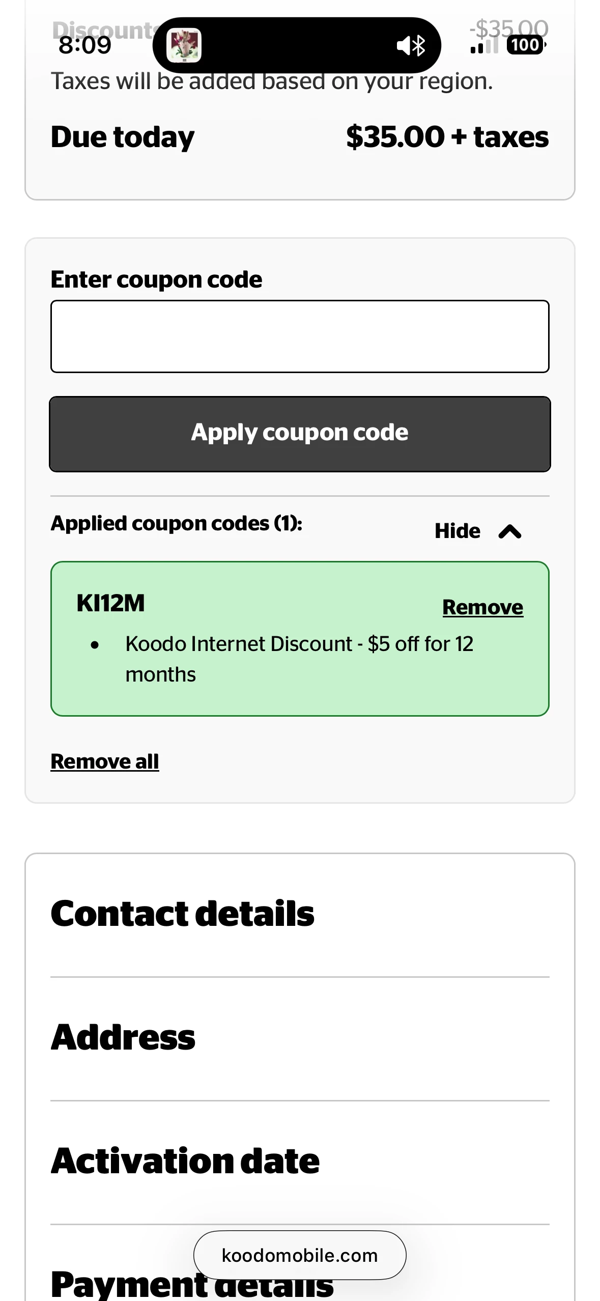 I am trying to purchase koodo internet. I am a existing koodo customer and logged into my account. I can’t get past the point of entering a Promo code. I enter the code, it works but then there is no option to continue to contact details. And yes I have tried incognito mode and clearing website cookies and whatnot.