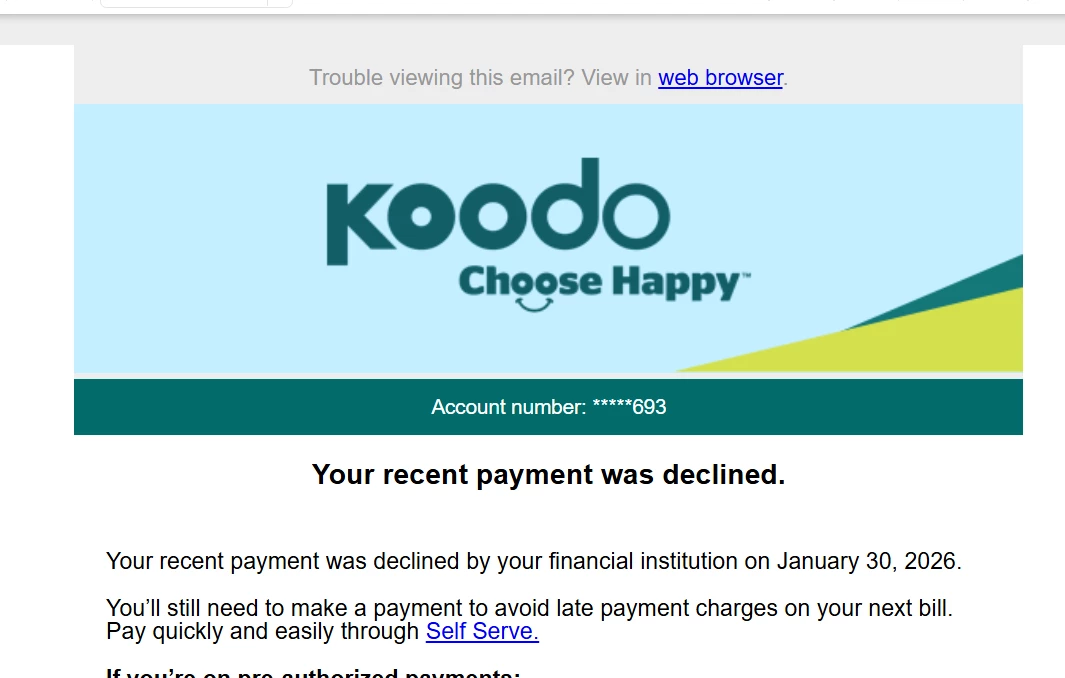 Do you currently owe a balance on your Koodo self serve and it is due Feb 5th or is it currently showing $0?