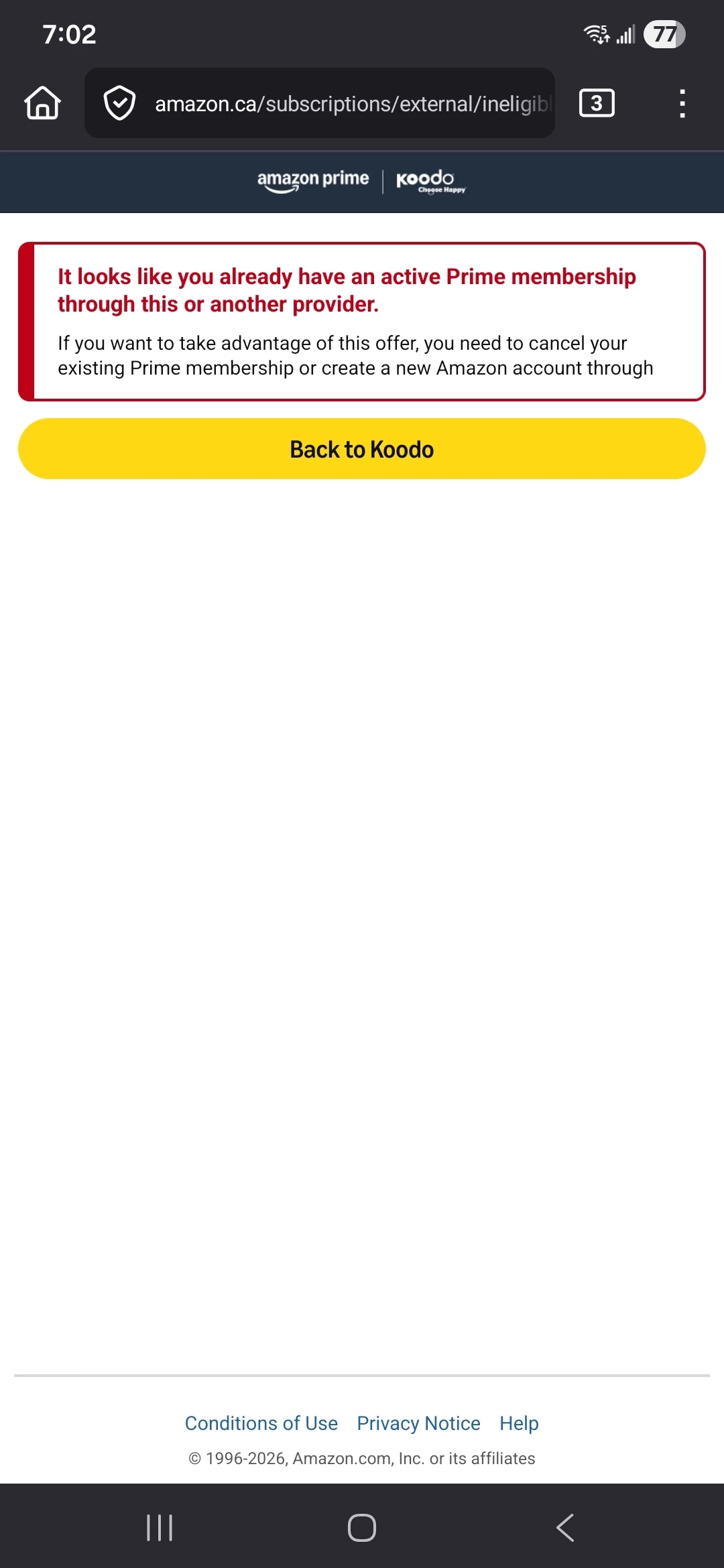 I contacted Koodo last week because I couldn't log into Self Serve to activate/link Disney+ to my existing Stream+ subscription. There was an issue with the email linked to my Koodo account as I wasn't receiving the reset password email. So we changed the email on my account. My Stream+ subscription didn't move over and the Koodo rep couldn't find it so she added the new subscription to my account. When I go to link my Amazon account it says the my Amazon account is linked through Koodo and I will need to cancel that to link it. A chat was started with Koodo to either cancel the old one or reinstate the only one and cancel the new one. The chat closed before I got an update.