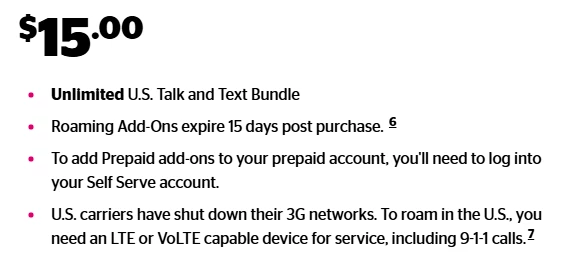 if your base prepaid plan does not include US calling or texting then you will need the $15 US Roaming add-on.