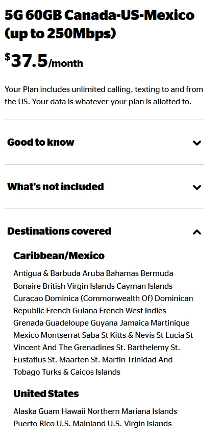 From what I recall, the Caribbean is not included in the Canada, US, and Mexico plans. If you are traveling to the Caribbean, you can activate the Caribbean and Mexico Travel Pass as an add-on.