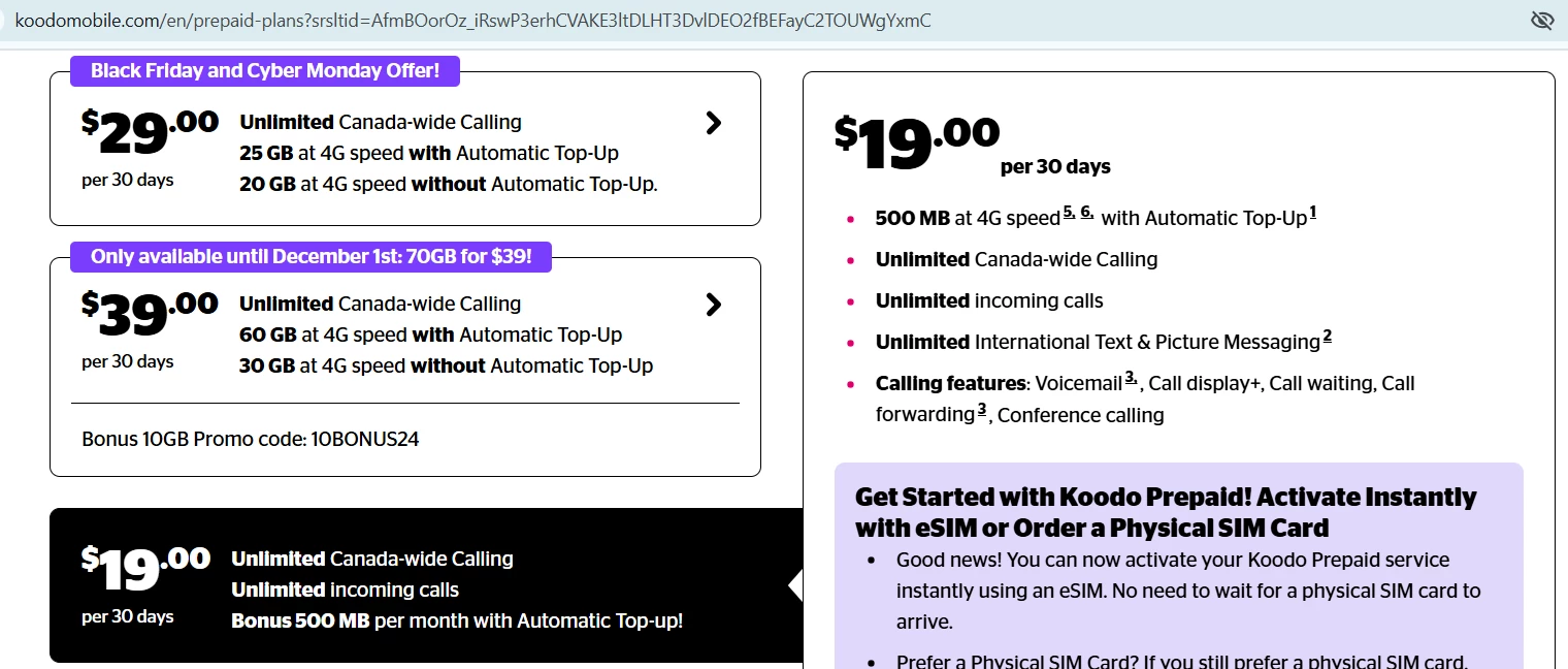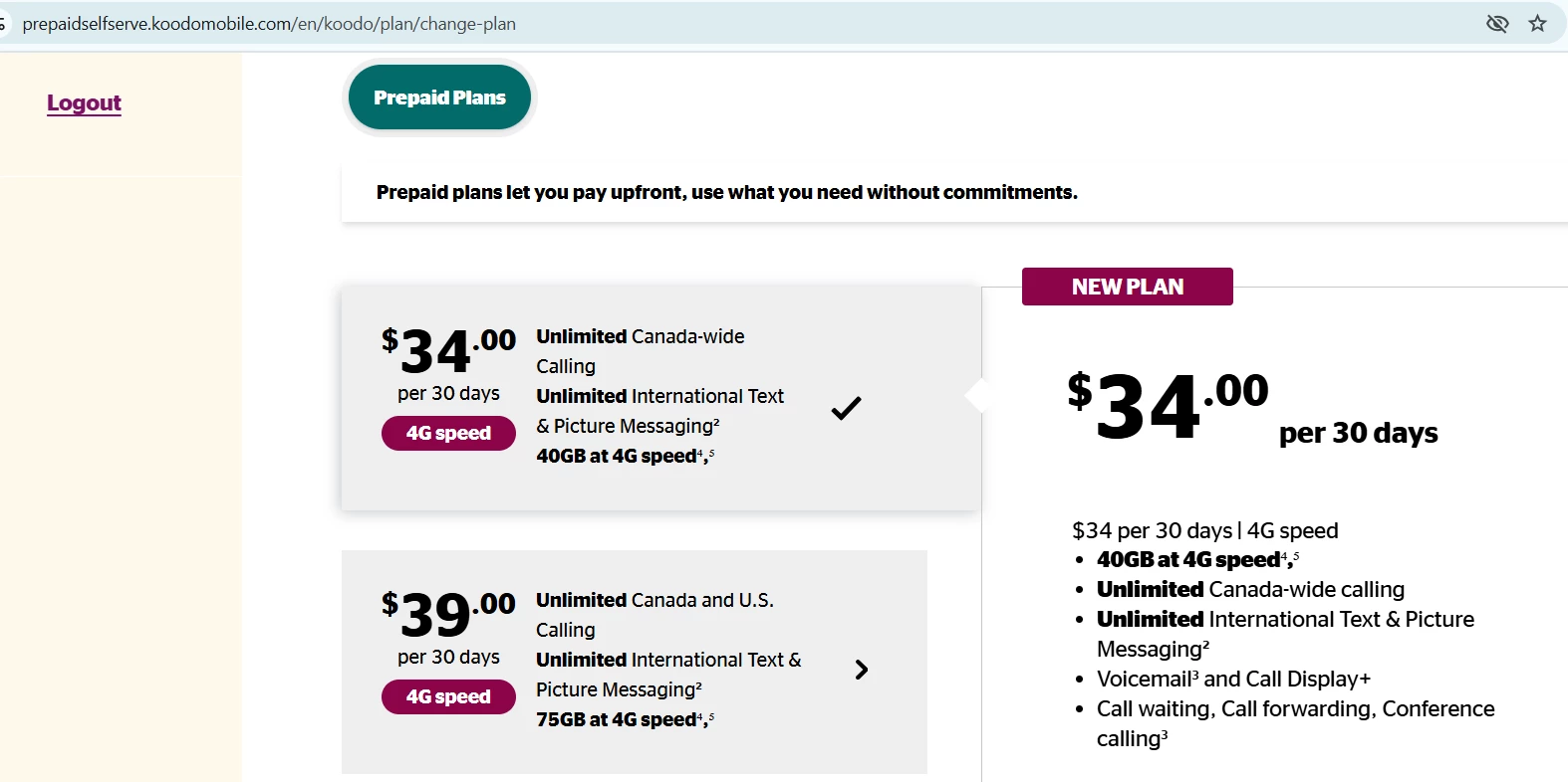 They show different plans available in their system and different plan options under Self Serve as shown below: