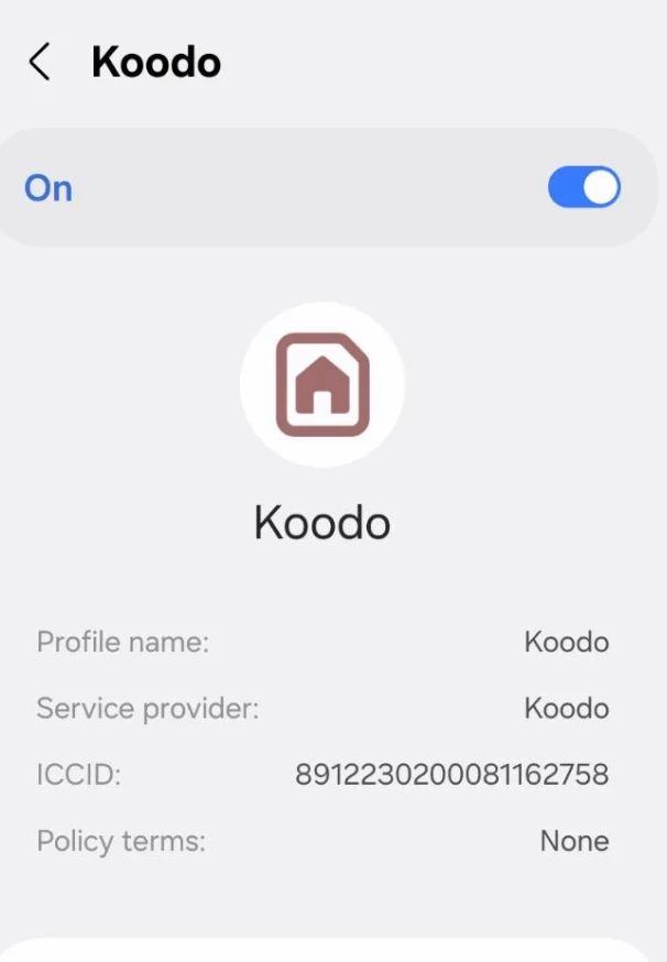 - Currently NO other sim or e-sim exists on my phone other than the Koodo one