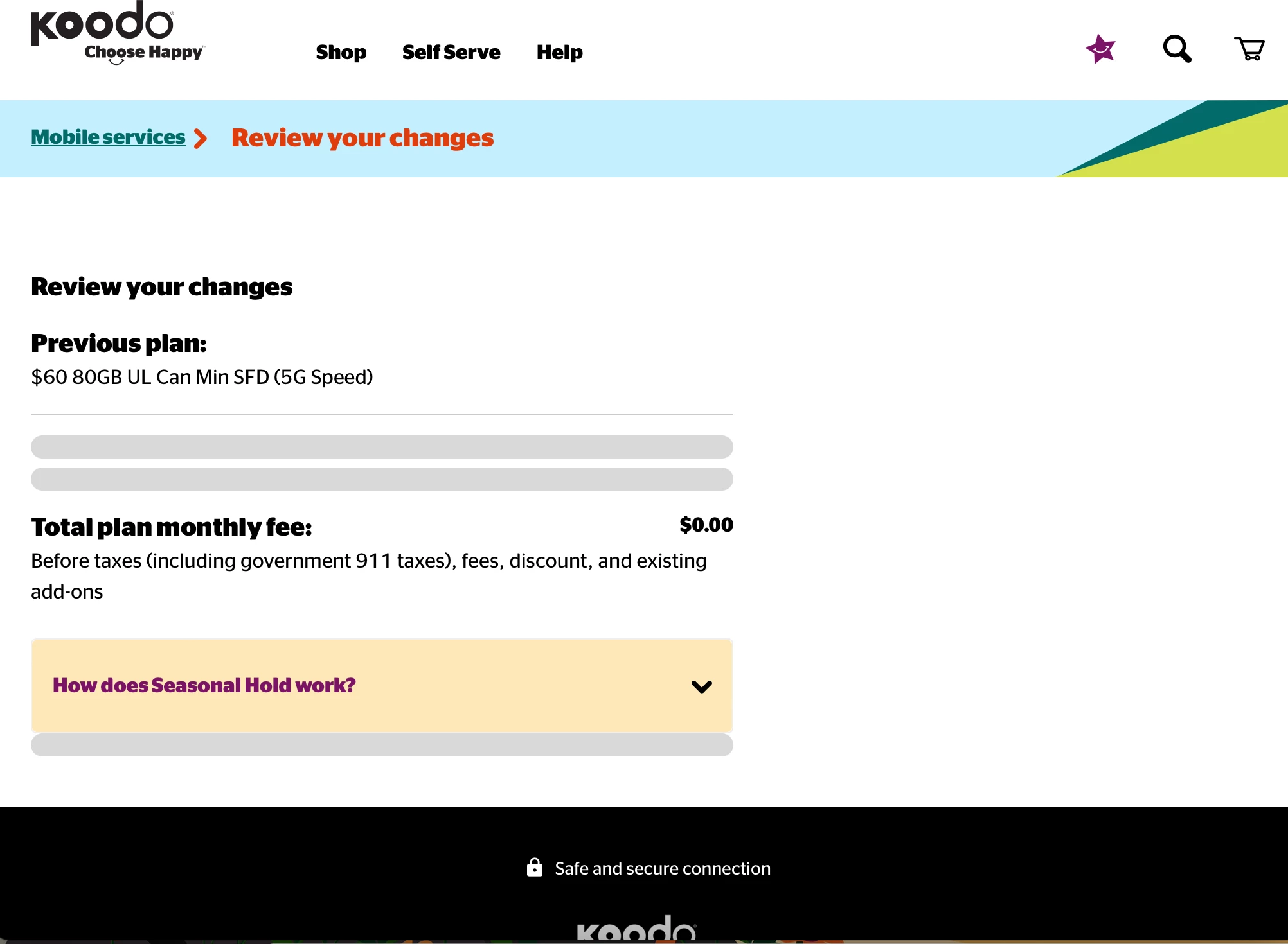 I want to activate seasonal hold but when I go to “mobile services” and click “pause my plan temporarily”, I get to a page called “review your changes” but then the page gets stuck loading indefinitely and there’s no button to activate seasonal hold. I tried using incognito mode, different browsers and even tried different devices but the same thing happens.