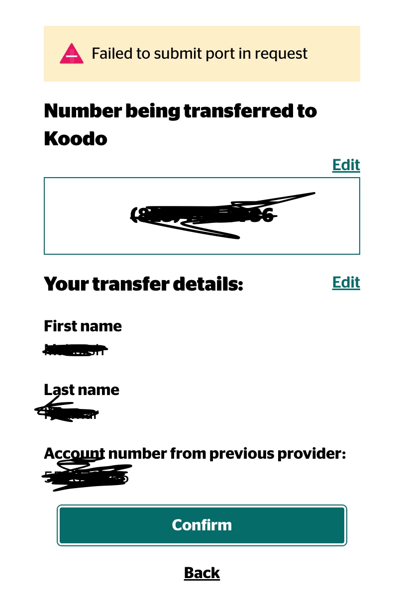 I am getting error while I am trying to get my old number from my previous provider to Koodo, can someone help me pls?