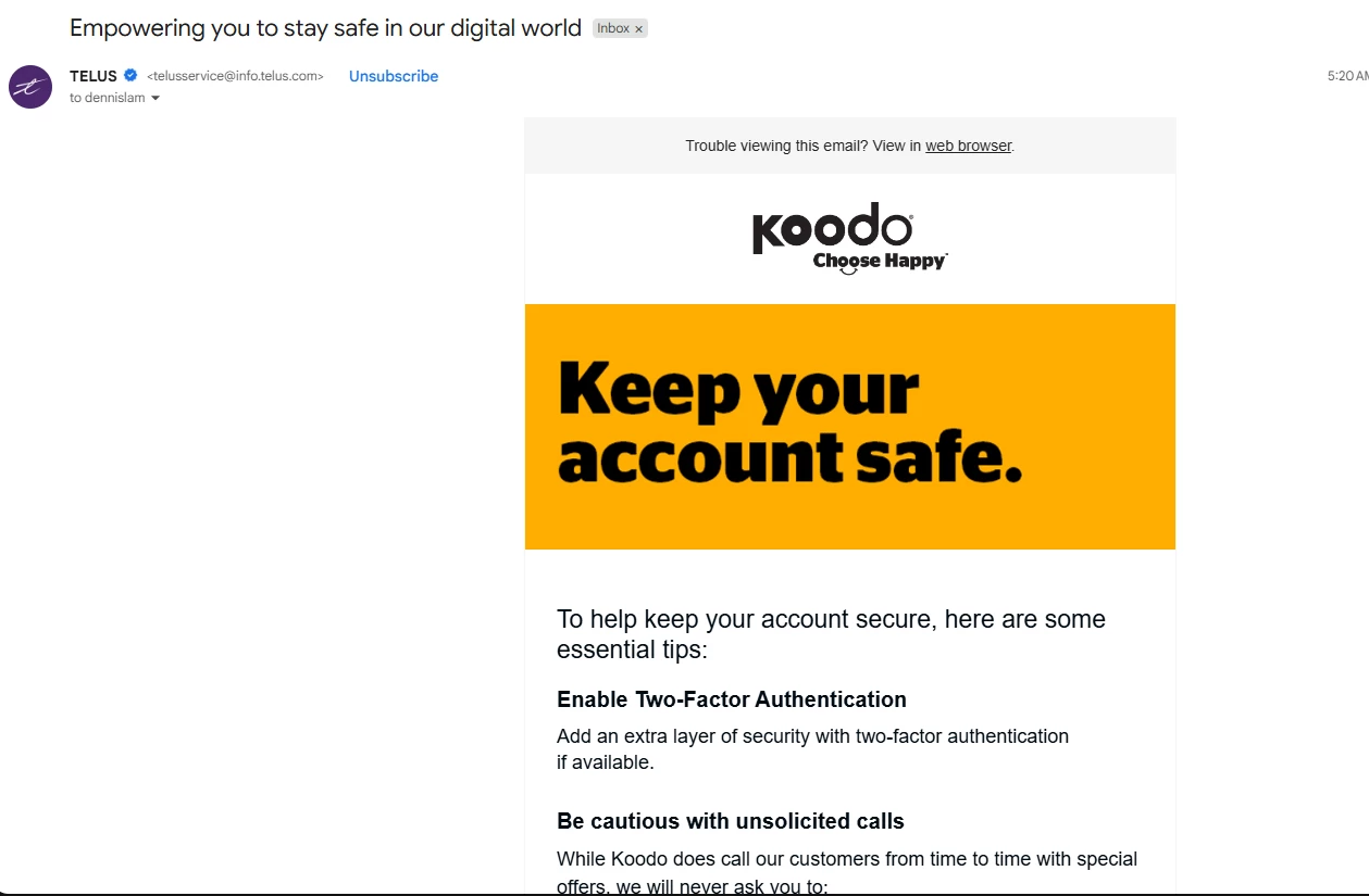 I got an email from Koodo regarding improve security and talking about enabling MFA or 2FA, but Koodo doesn’t allow to enable that setting, at least for me I don’t have the option.