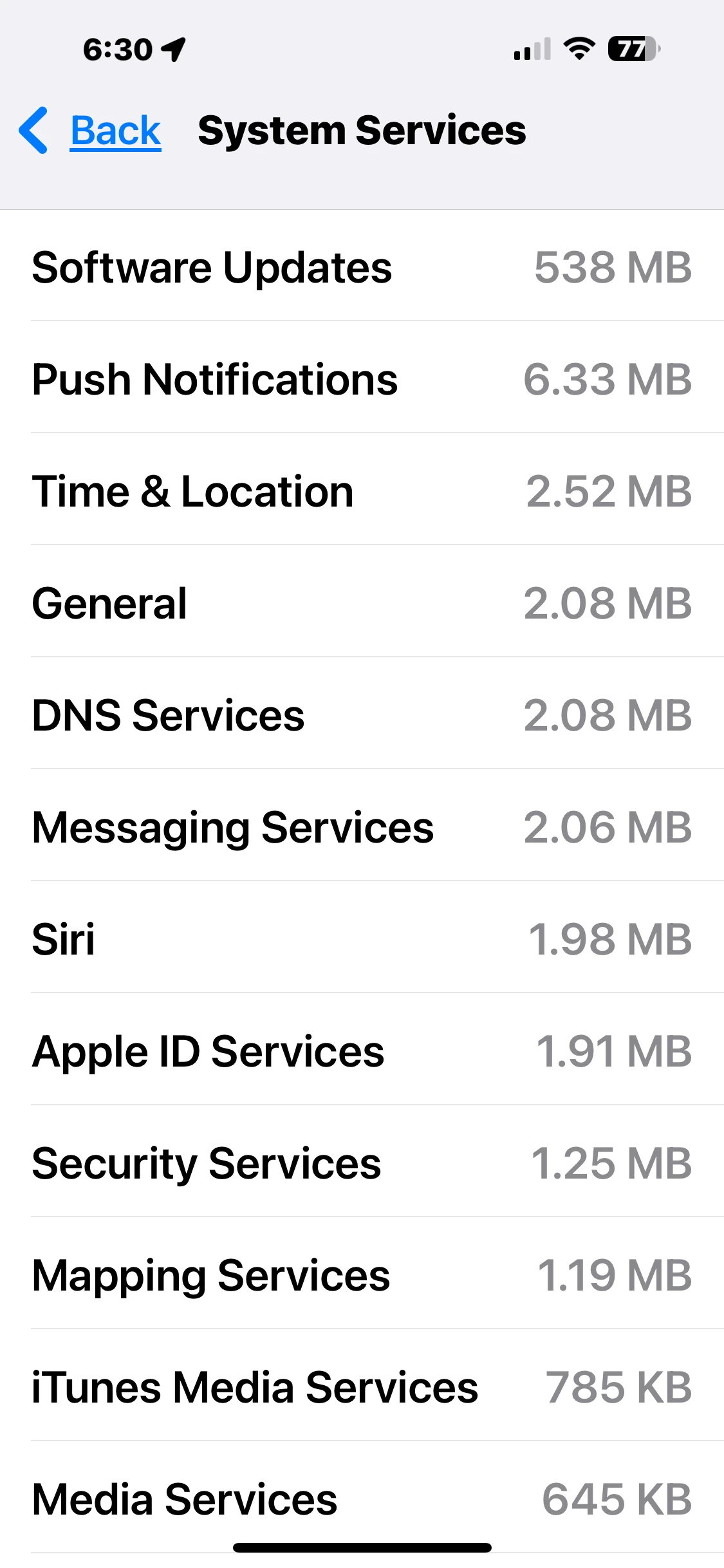 Have spent 2 hours with Apple and with 2 different Advisors over 2 days via telephone and they have made sure that my settings are fine. I never have Software update automatically but Cellular Data, System Services say Software Data is sucking up my data. Diagnostics indicate that my phone is in excellent shape. They made an appointment for me with the Genius Bar who I am sure will ask if I talked to Koodo. Apple says they don’t have any other callers having this issue. I blew through 500 MG of a 4 GB plan in less than 2 hours yesterday, Day 3 of this period. Last month, I barely made it under 4 GB. Normally, I use between 250 and 500 MB per month.